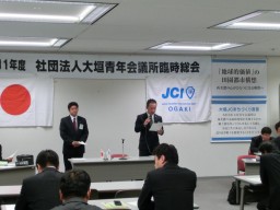 今回の臨時総会では、2011年度 社団法人大垣青年会議所 一般基金会計取り崩し承認の件および2011年度 社団法人大垣青年会議所 第2次補正収支予算(案)承認の件が議題となりました。