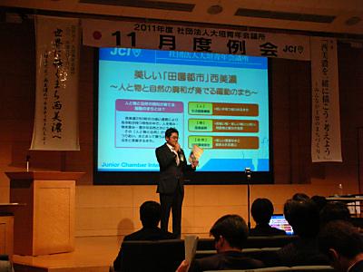 11月1日(火)ソフトピアジャパン センタービル1F セミナーホールにて11月度例会(西美濃を一緒に描こう・考えよう〜みんなが主役のまちづくり〜)が行なわれました。今回は、西美濃で主体的に「まちづくり」を行なっている方々に参加していただき、活動発表を行ないました。