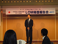 10月5日(土)、奈良の板焚屋にて、第62回全国大会奈良大会 LOMナイトが開催されました。国家グループ日本の未来選択委員会に委員と出向されている、小塚生開君、斎藤和信君、高橋泰弘君より、ご挨拶を頂きました。式典を無事に終えられた出向者の皆様から、お言葉を頂き、会場は大いに盛り上がり、そのご活躍を称賛し、参加者全員で労いました。盛大なLOMナイトが開催でき、会員相互の交流も深められました。