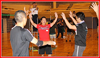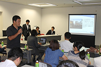 例年、主に身体を動かす研修が多い中、今年は一風変わった研修が行われました。研修内容は、各グループをLOMと仮定し、それぞれの考えた「まち」を活性化するための事業を考え、研修の締めくくりに「演劇」という形で発表していくものでした。