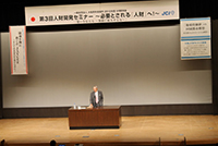 第3回人財開発セミナーは、「想いを伝える〜無限に拡大する力〜」をテーマに、元横浜ベイスターズ監督の権藤博氏にご講演いただきました。講師の権藤氏は野球界で選手から監督になられるまで数々の経験をされてきました。その経験を通し皆様へ想いを伝えられました。選手は、自己管理の仕方で個々の考える力がつく、人を認めることにより人は成長するなど、権藤氏の実体験を通した講演は、皆様に想いは伝わったでしょうか。個々の想いを他へ伝えることによってその想いは拡大し無限大の力へと変わって行くことを学んでいただきました。