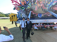 当日は天気が悪く小雨が降っていましたが、我々の願いが届いたのか、途中で天候も良くなり無事に歓迎レセプションを行なう事が出来ました。現地青年会議所の方々や、伝統芸能の獅子舞が盛大にお出迎えをする中、我々大垣青年会議所メンバーも元気な姿で下船される団員を、横断幕を手に盛大に出迎え、ハイタッチにて寄港地活動へ送り出す事が出来ました。