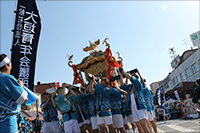 当日は見事な秋晴れの中、3年に1度である大神輿を担ぐことができました。また、力強く、生き生きとした姿で担ぐ事により、地域住民の方々へはこの地域の活気を十分に感じて頂けたのではないかと思います。