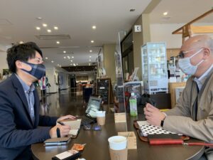 1.溝辺委員長と石井様 打ち合わせ風景