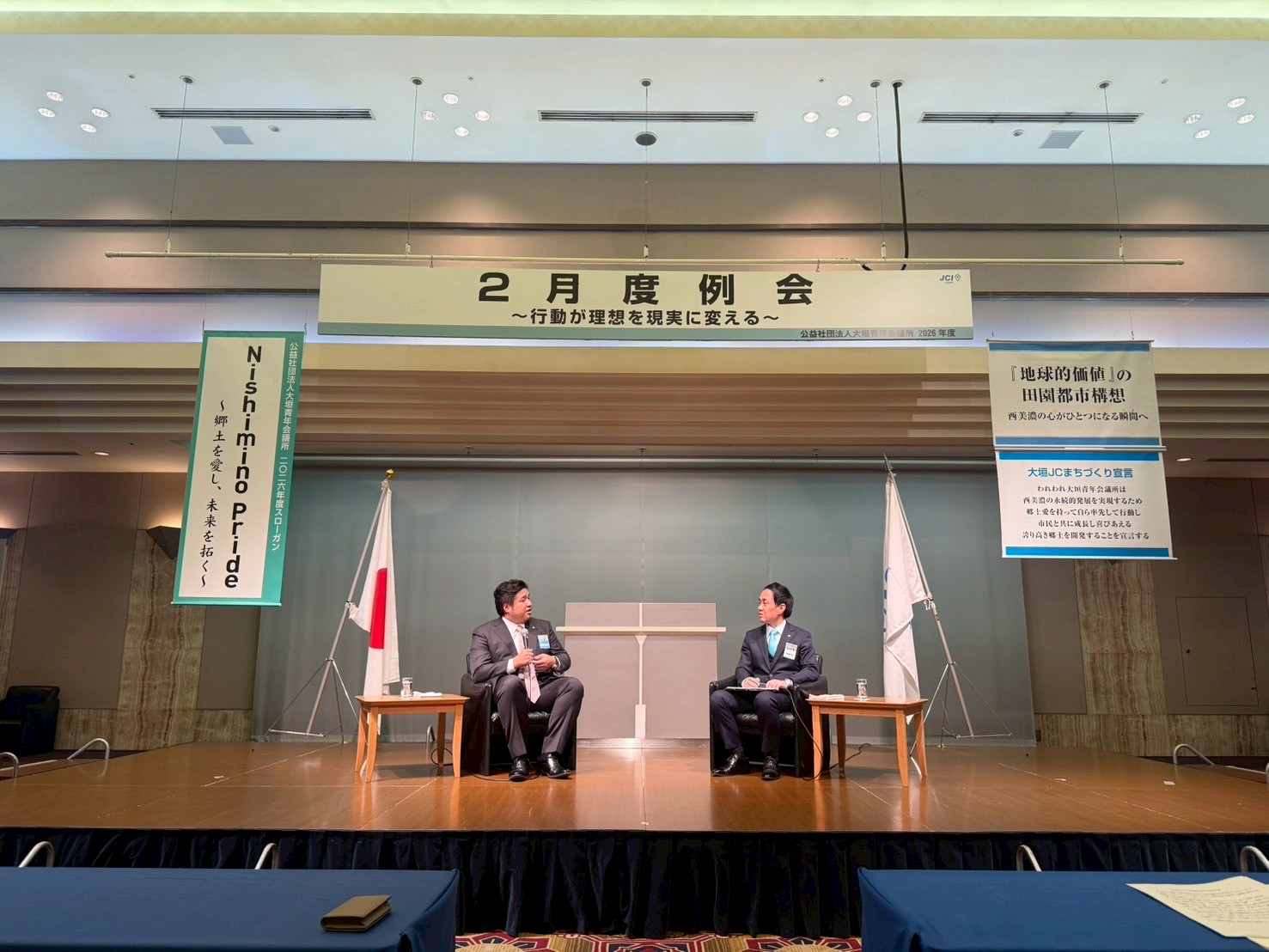 公益社団法人日本青年会議所2025年度会頭を務められた 外口真大先輩をゲストにお迎えし、理事長 野田 正興 君との対談や、直前理事長 栁瀬 芳仁 君や会員とのパネルディスカッションを実施しました。