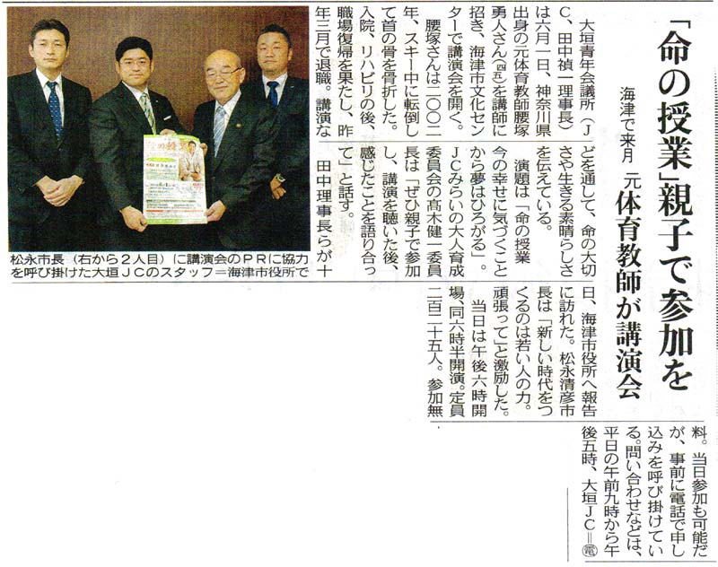 演題:命の授業 今の幸せに気づくことから夢はひろがる