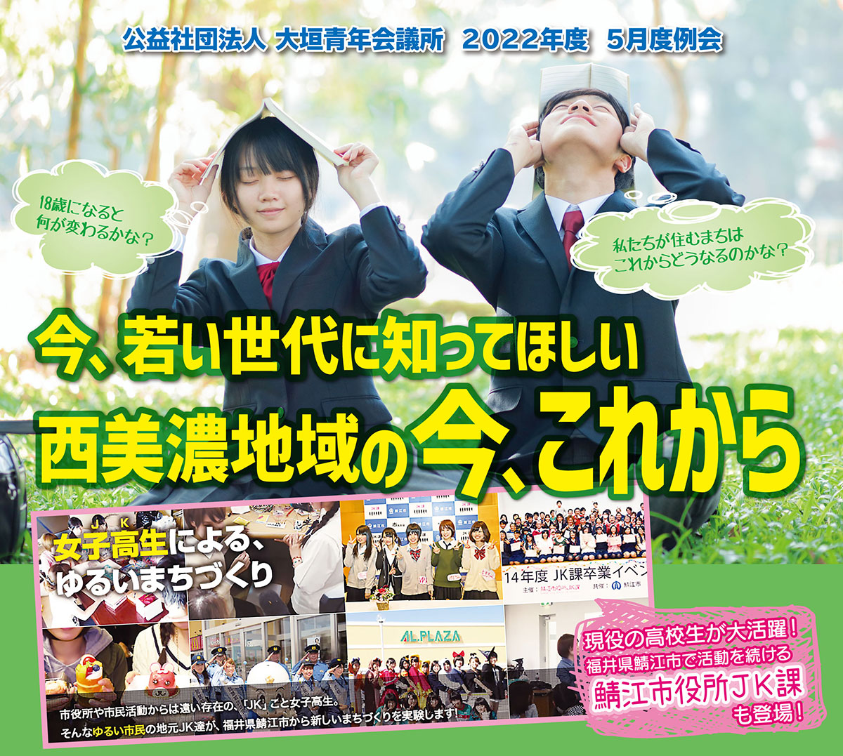 西美濃地域が抱える課題をテーマに、現役の高校生が大活躍している福井県鯖江市役所JK課メンバーのインタビューの紹介や、大垣青年会議所が西美濃地域の課題について若い世代にメッセージを配信します!