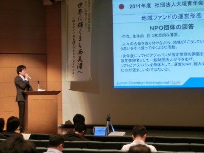 公益社団法人取得推進会議からは移行に向けて残り2年数ヶ月になり、移行に向けて各LOMへ進めて行くように報告がありました。出向されております西脇 崇史君も壇上に上がり、有志をみせていただきました。今後大垣JCの一般社団法人移行に向けてブロックで学んだことをLOMに落とし込んでくれると思います。