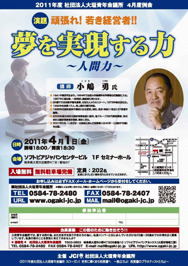 を、スローガンとして掲げ、夢へ向かって決して諦めることなく進んでいく、自信に満ち溢れた逞しい人材を育てるため、貴社からも若い人材を乗船させていただけませんでしょうか。必ず貴社のみらいを担う、自信に満ちた「まなざし」で帰港されることでしょう。(参加資格は西美濃地域に在住し、20歳から35歳までの男性・女性で、健康な方)皆様からの応募をお待ちしております!