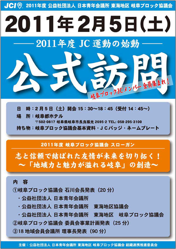 2010年度 公益社団法人日本青年会議所 第59代会頭 (3)その他 ドレスコード ダークスーツ(ブレザー禁止)・ネームプレート・JCバッジ着用