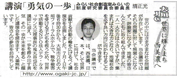 岐阜新聞‐みらいの制度研究委員会 委員長 清 正光