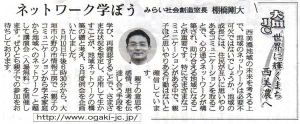 岐阜新聞‐みらい研修室 室長 矢橋秀哉