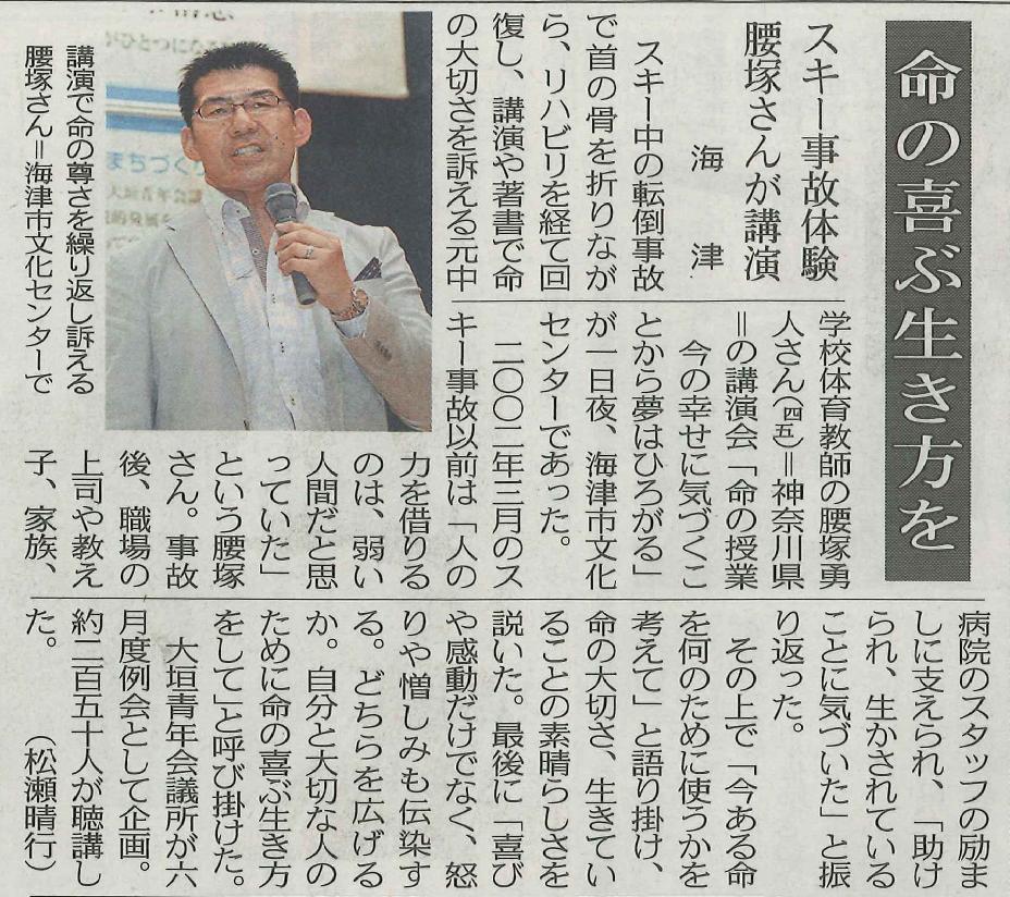 中日新聞‐「命の授業」講演会実施