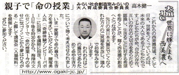 岐阜新聞−未来の大人育成委員会 委員長 高木健一