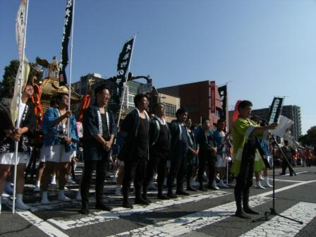 通りに出て、理事長の元気な掛け声のもと、大きな声と活気ある雰囲気で御輿を担ぐ事が出来ました。会員の表情も、地域住民の方々の表情も、本当に祭りを楽しんでいるように感じられました。各企業や団体の催し物も迫力があり、大いに刺激を受けました。この雰囲気を肌で感じられた事は