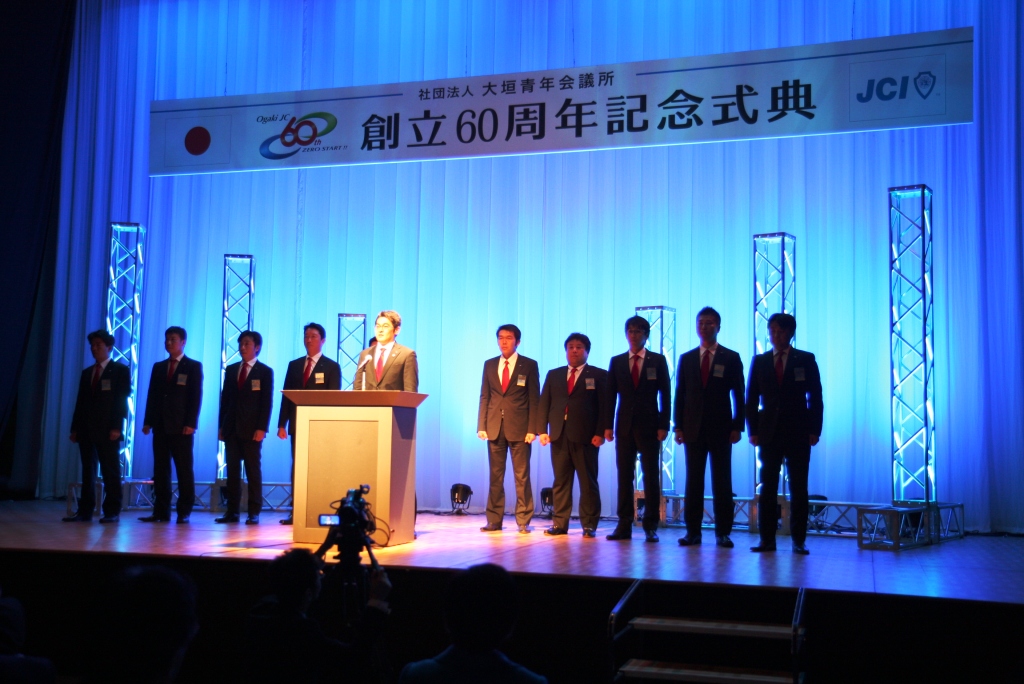 式典では大垣JCの60年の歴史を振り返る映像から三輪理事長の力強い堂々としたご挨拶と来賓からの祝辞をいただき、メンバー全員が周年式典に参加できる幸運と明るい豊かな社会の実現へ向けての情熱を改めて確かめて頂ける場となったと確信しております。