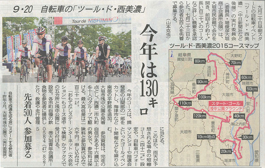 「ツール・ド・西美濃」9月20日に号砲